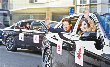 昨天(6日),一支由二十多辆车组成的爱心车队,沿外环线进行宣传活动,为天津市宁河县一白血病患儿筹款。这是由网友志愿者和华维集团的爱心员工,通过微信朋友圈短短两天内便集结起来的爱心车队。截至目前,筹款已超过20余万元。(记者 刘乃文 摄)