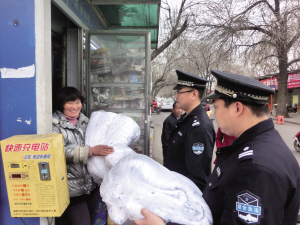 “多亏有你们这些好心人,帮我们渡过难关,过上安稳日子!”面对天津市河东区综合执法局的帮助,困难商户梁久红感慨地说。这是河东区综合执法局第三大队党支部为辖区困难商户“送温暖,献爱心”的一个场景。执法局通过此项活动,用筹集到的善款为辖区困难商户购买棉被、电暖器等防寒用品,帮助他们温暖过冬。(记者 安元 赵建伟 通讯员 于艳松 刘泽瑞 摄影报道)
